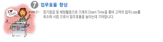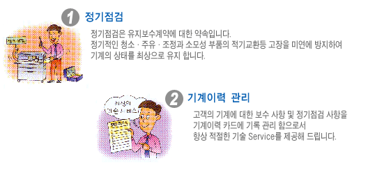 정기적인 조정, 주유, 부품 교환으로 돌발 고장을 사전에 예방하고 제품의 수명을 보존하며,