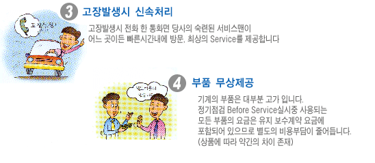 월 1회 이상 정기 예방 점검/부품의 정기적인 교환/신속한 고장 처리등 통상의 유지관리(Maintenance)를